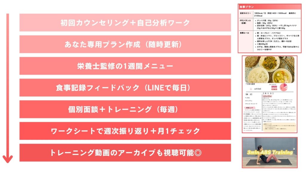 悩みや不安を直接相談できるため、ダイエットに対するモチベーションも高まります。まずは一歩踏み出し、理想の体型を目指しましょう!